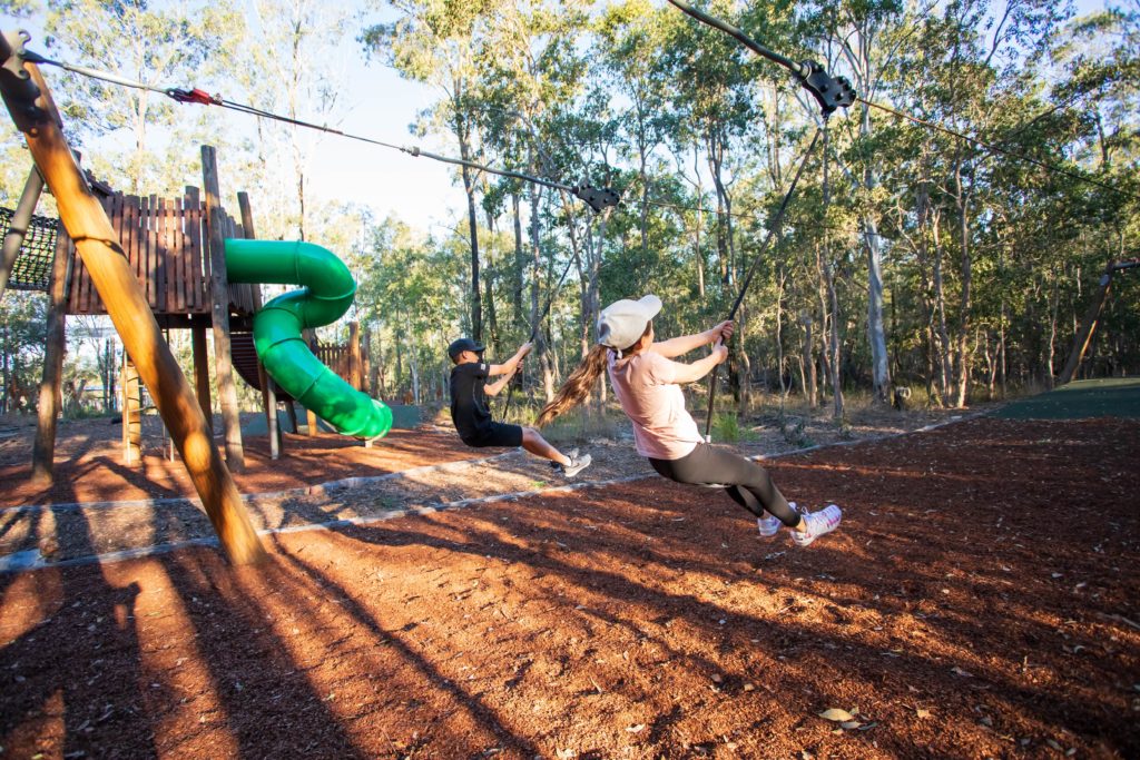 The Archerfield Wetlands District park playground has been designed to challenge and appeal to children from around the age of 6 up to 12. Children using the playground should be supervised at all times.