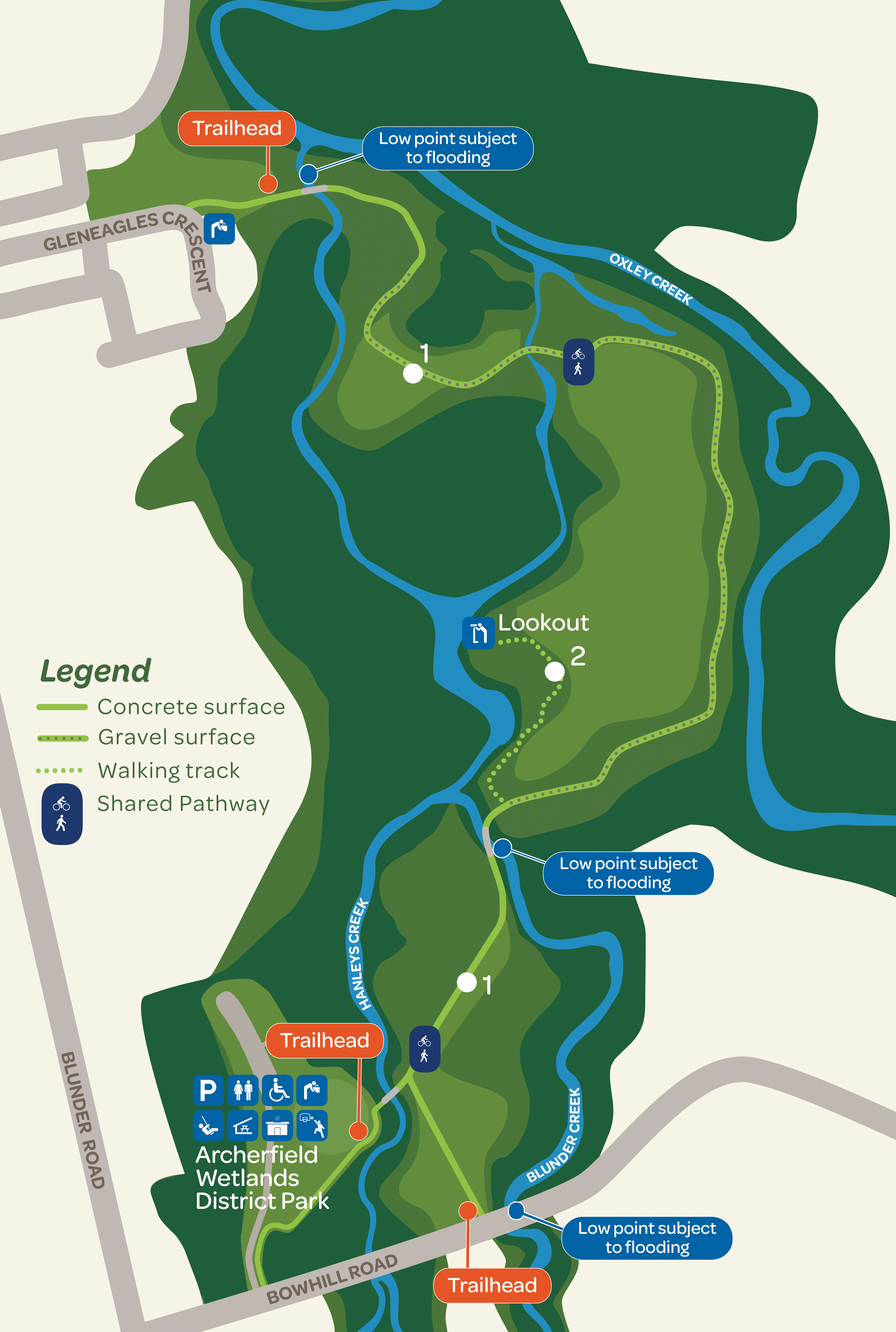 Get active and find nature along Oxley Creek’s various walking and cycling tracks and trails. Browse the map below to find your next adventure along Oxley Creek. For more detailed information on these routes, consult the information below this map.