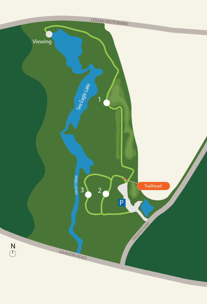 A low difficulty 2.9km (one way) walking or off-road cycling trail through Archerfield Wetlands Parkland. This trail takes visitors through the floodplain environment, past open grassland landscapes, Forest Red Gum bushland, over creeks and along the riparian edge of Oxley Creek.
