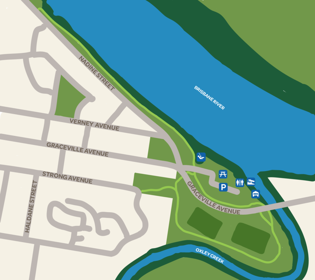 Get active on the riverside pathway that runs between Graceville Riverside Parklands and Faulkner Park, where the Brisbane River meets Oxley Creek. This easy walk is a 2.4 km round trip.